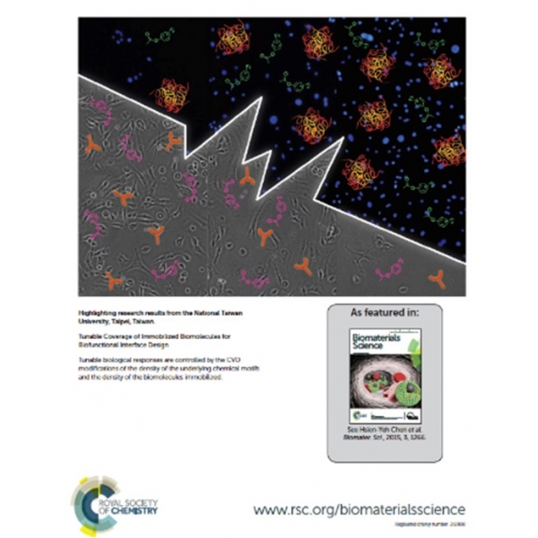 Biomaterials Science, (2015).(Materials Science, Biomaterials: 11/33=33.3%, IF: 3.614) (Featured as Back Cover)DETAILBiomaterials Science, (2015). -
