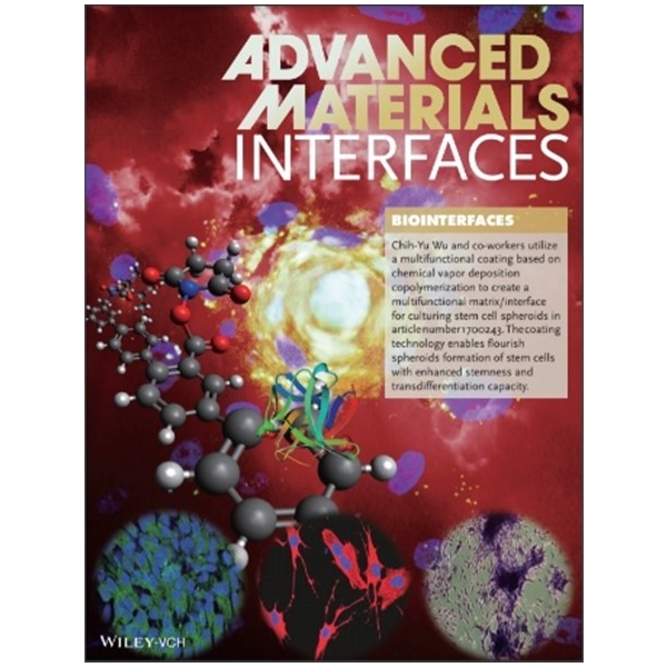 Advanced Materials Interfaces, (2017).(Materials Science, Multidisciplinary: 95/345=27.5%, IF: 6.389) (Featured as Front Cover)DETAILAdvanced Materials Interfaces, (2017). -
